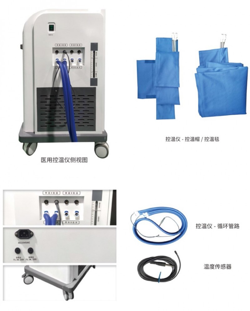 主机、控温毯/控温帽、循环水管、温度传感器、电源线。